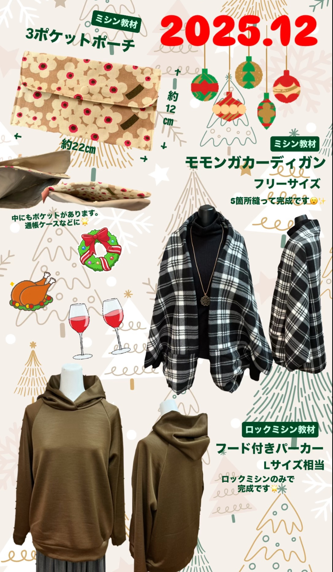 ※ロックミシン教材のサイズ対応や型紙は付いておりません。ご了承ください。