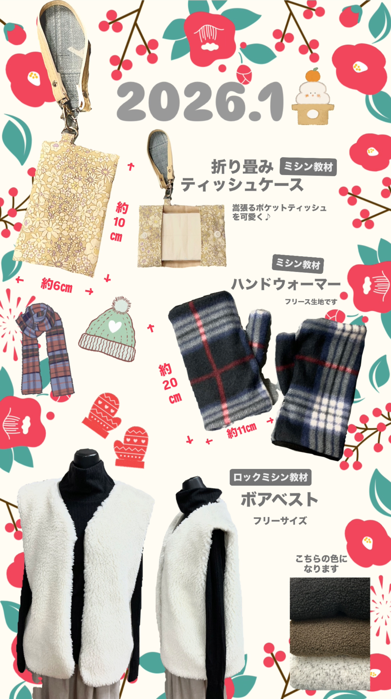 ※ロックミシン教材のサイズ対応や型紙は付いておりません。ご了承ください。