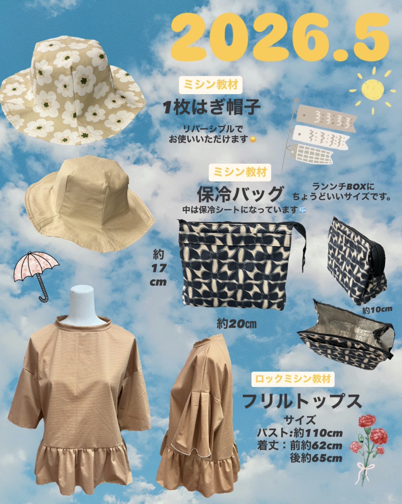 ※ロックミシン教材のサイズ対応や型紙は付いておりません。ご了承ください。
