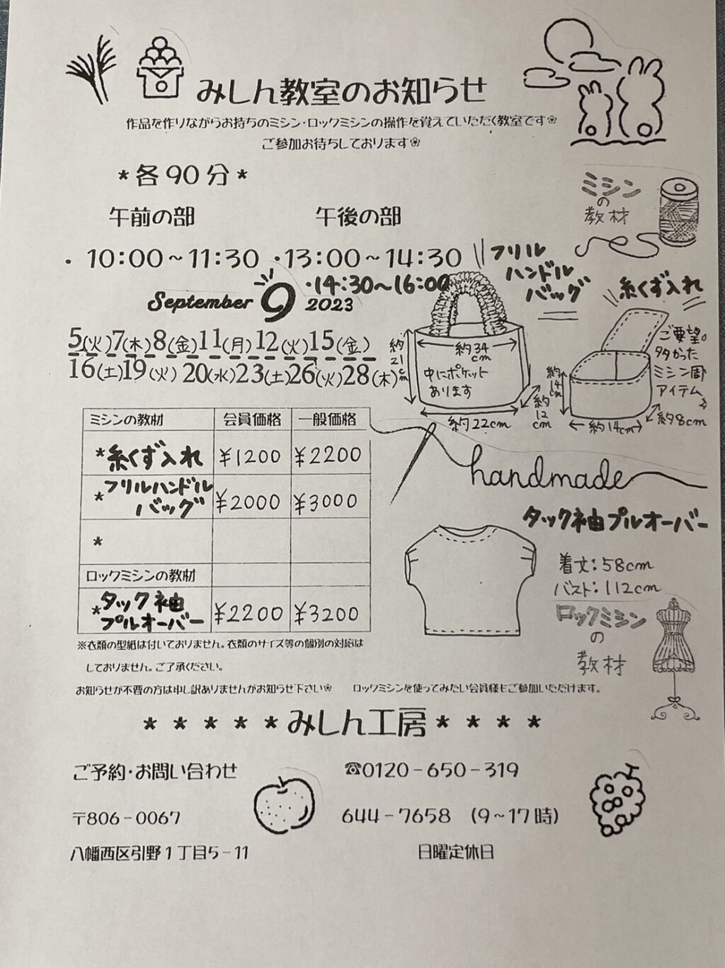 購入されたミシン・ロックミシンの正しい使い方を深めていただく教室を開いております。