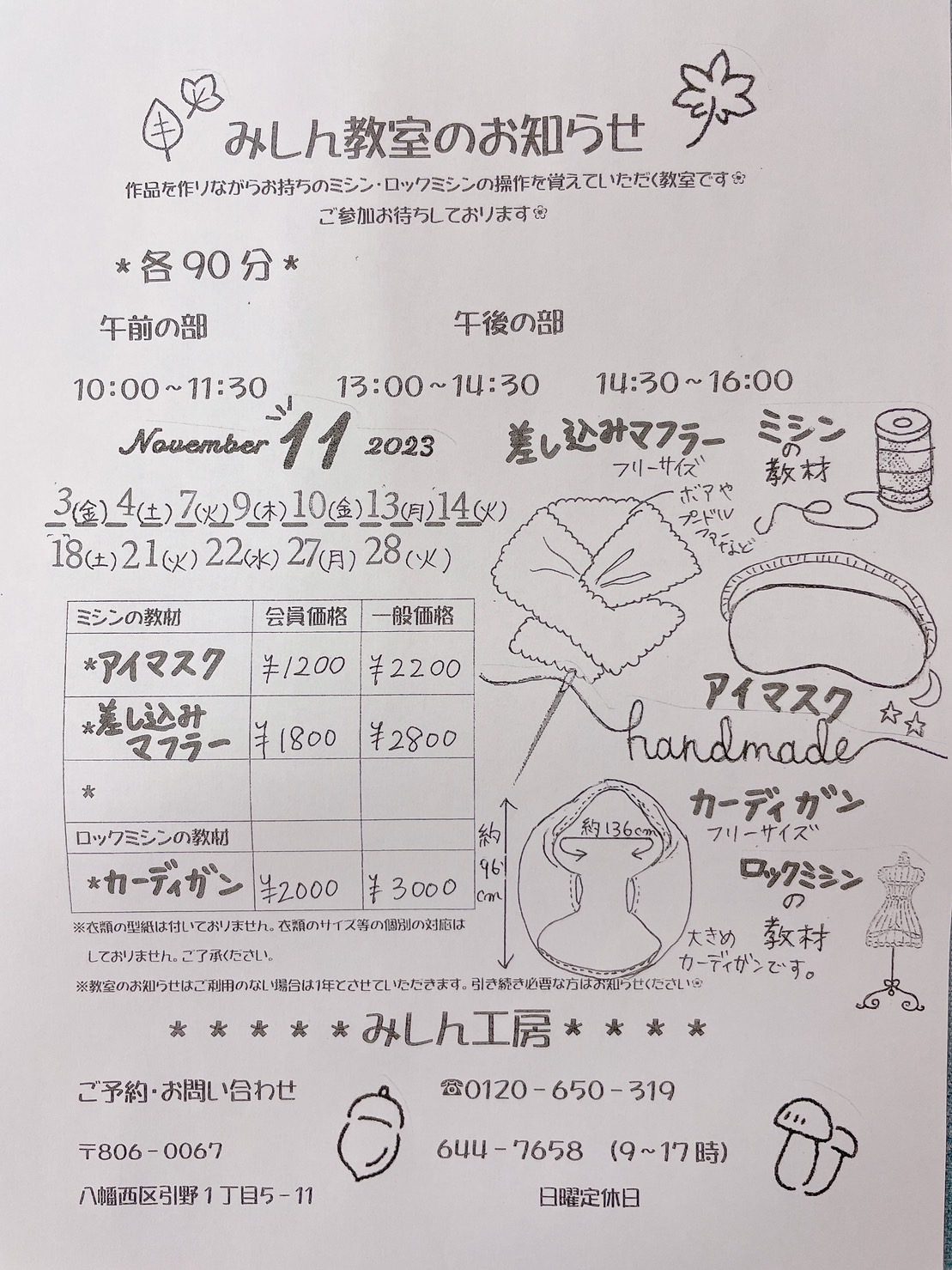 購入されたミシン・ロックミシンの正しい使い方を深めていただく教室を開いております。