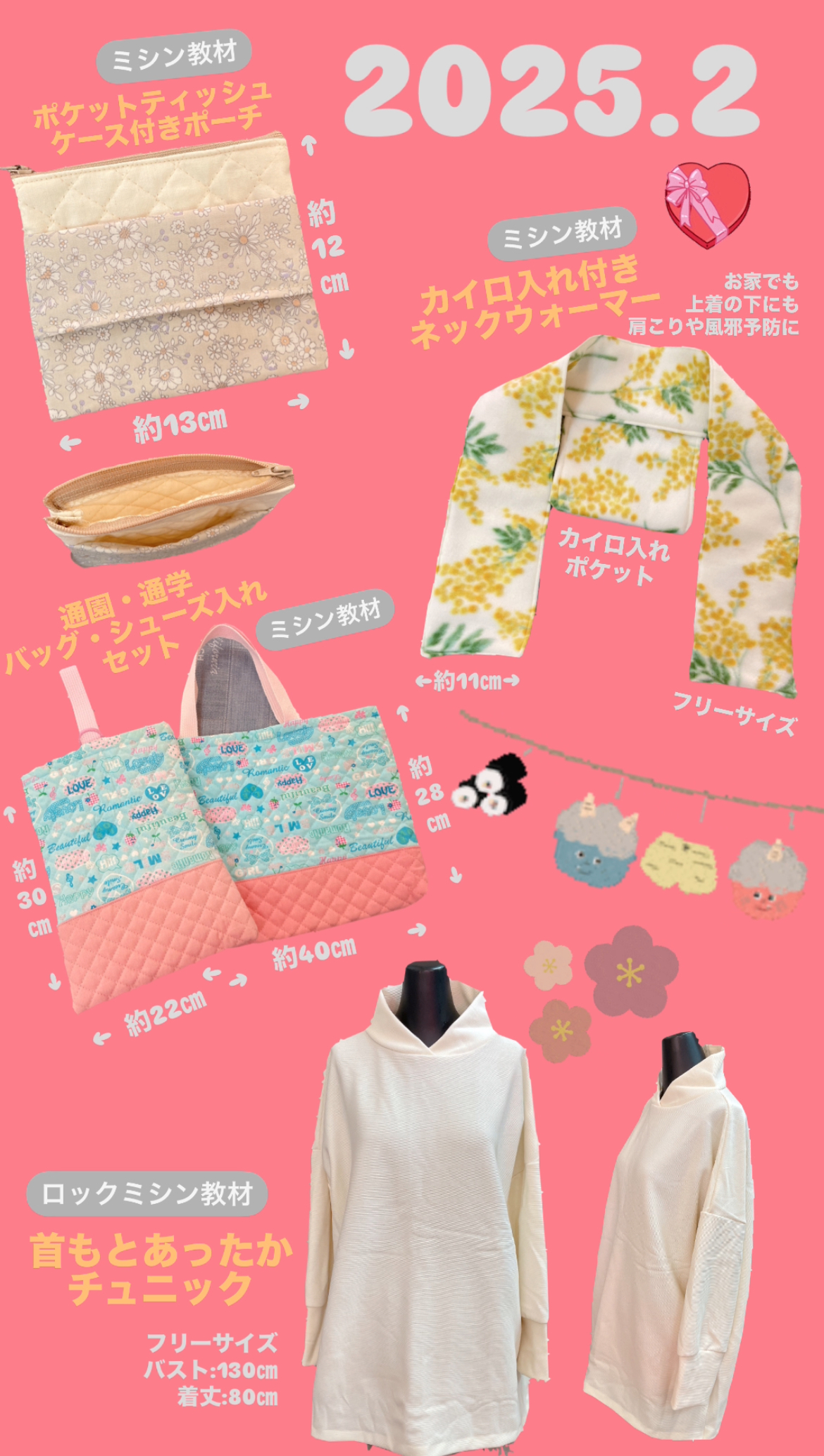 ※ロックミシン教材のサイズ対応や型紙は付いておりません。ご了承ください。